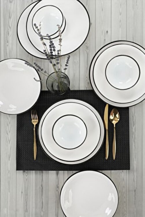 • Keramika Aegean White Black Mesh Dinnerware 12 Pieces 4 Person