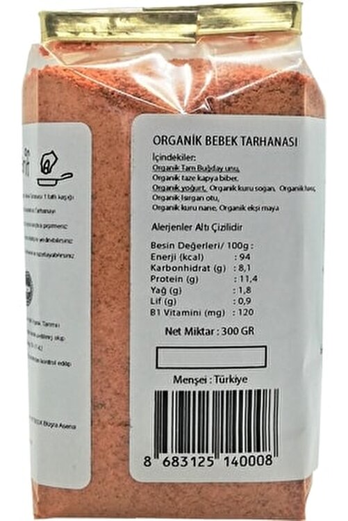 additive free, drug-free, GMO-free, pesticide-free and organic certified. Important Reminder: Organic wheat flour and organic yogurt contain gluten. Ingredients: Organic wheat flour, organic fresh capya pepper, organic yogurt, organic dry onion, organic carrots, organic nettle, organic dry mint, organic sourdough. Nutritional Values Energy (kcal): 94 Carbohydrate (g): 8,1 Protein (g): 11,4 Fat (g): 1.8 Fiber (g): 0.9 Vitamin B1 (mg): 120 Organic baby tarhana is made with organic certified ingredients specially prepared in accordance with baby supplement food. It is quite rich in B vitamins. It contains a lot of calcium, zinc and iron. It will retain its freshness for a long time, while its packaging is not opened. When choosing a baby carcass, it will be the most correct option to give preference to organic, rather than conventional options. Notice:The articles are for general informational purposes only, please contact your doctor for diagnosis and treatment.