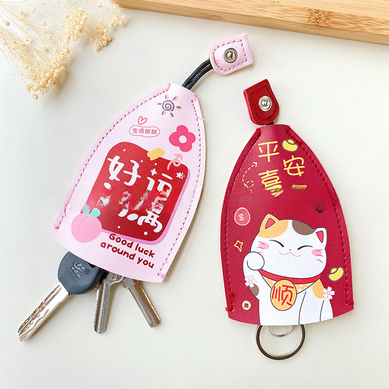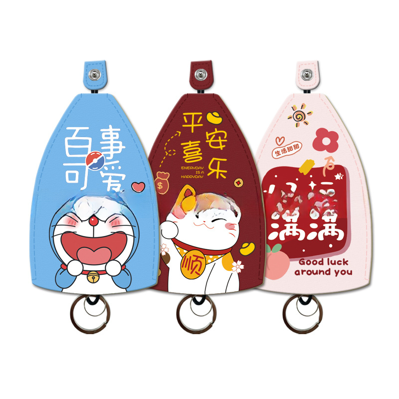 Key Bag Pull-out Electric Car Key Leather Case Keychain Protective Case Key Bag Women's Cute Storage Hand Holder