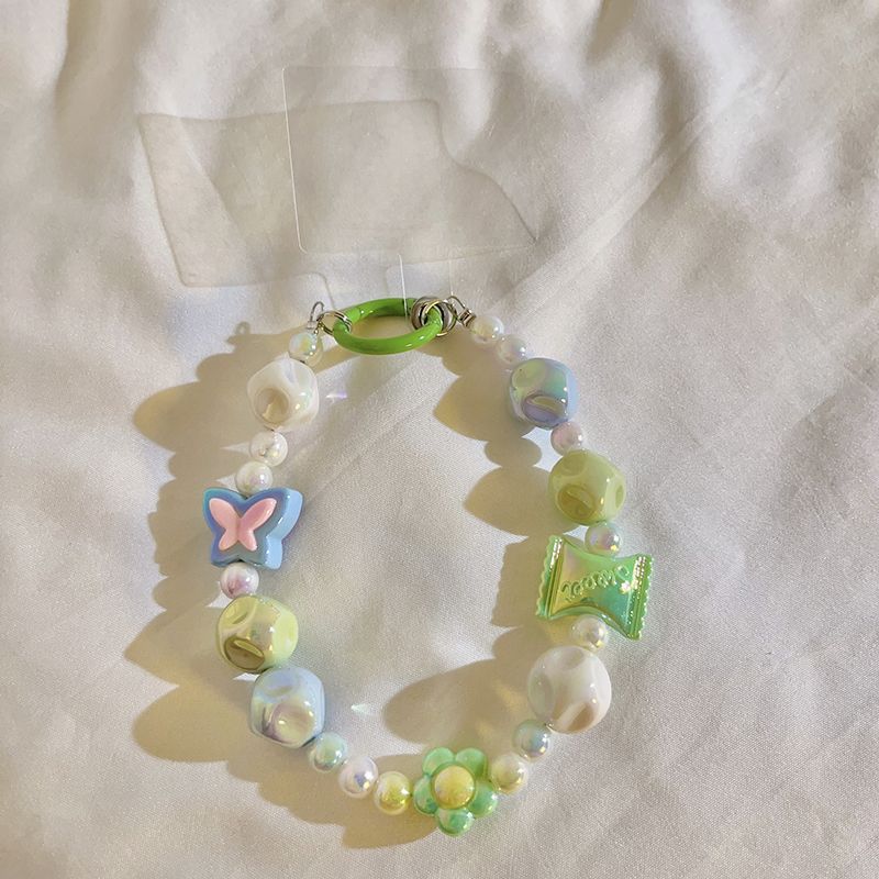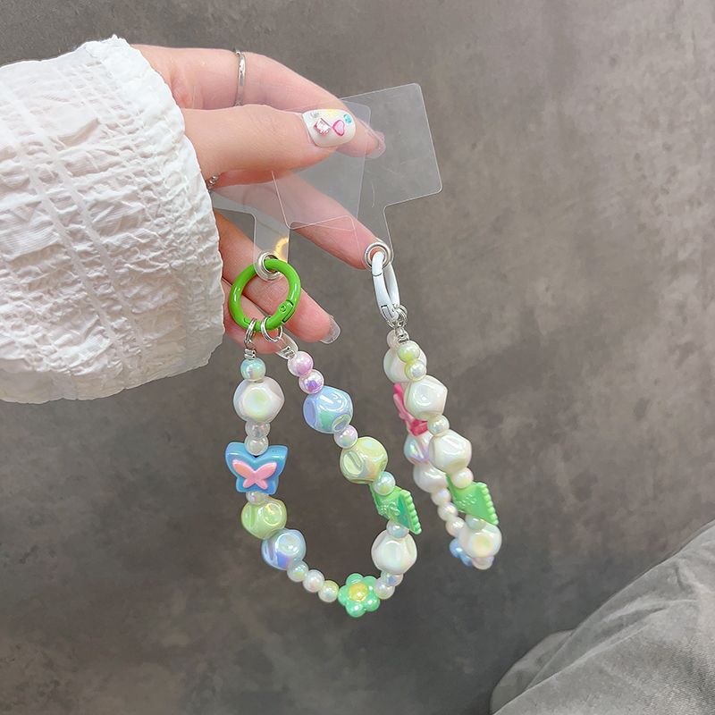 | nameOriginal | Key Chain Beaded Soft Girl Green Beaded Mobile Phone Chain Cute Mobile Phone Case Pendant Camera Accessories with Clip |