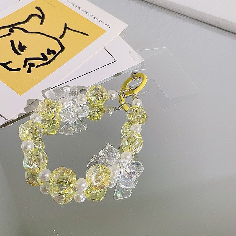Key chain beaded wind small fresh crystal mobile phone chain bow portable cute female pendant direct sales