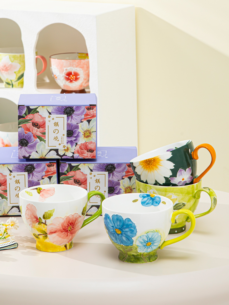 | nameOriginal | KF ceramic cup pastoral style breakfast cup Milk Cup microwave oven heated coffee cup mug large capacity female |