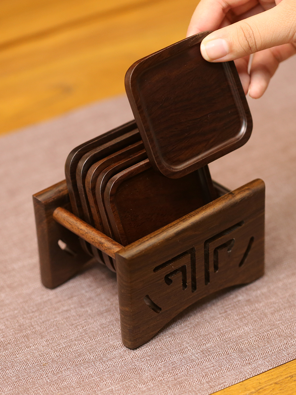 | nameOriginal | KF ebony solid wood tea mat coaster heat insulation mat cup holder office light luxury Rosewood tea cup mat tea ceremony kung fu accessories |