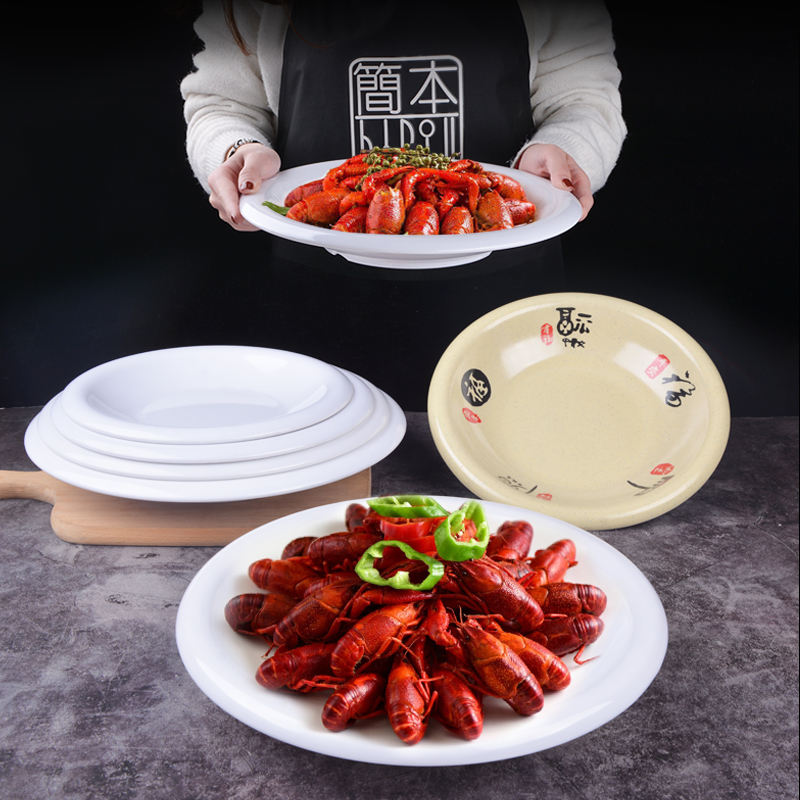 | nameOriginal | KF15 melamine plate commercial crayfish mapo tofu saliva chicken reverse plastic round soup plate restaurant |