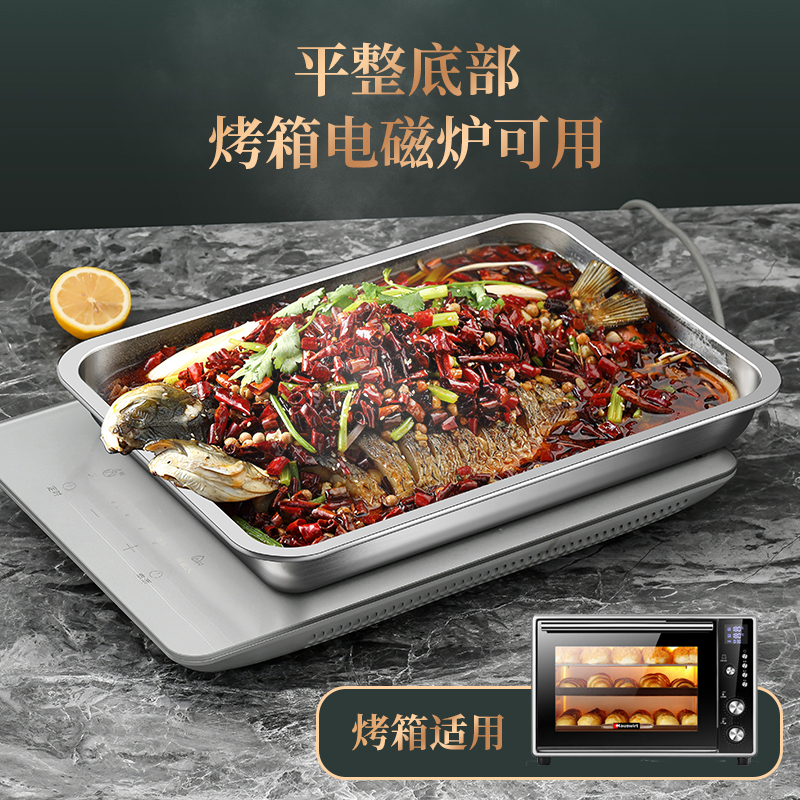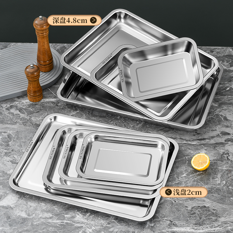 KF15304 stainless steel rectangular tray household commercial dish fish plate barbecue plate rice steaming cabinet plate