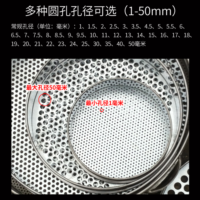 | nameOriginal | KF304 stainless steel round hole sieve blueberry sieve soil sieve mushroom sieve Diamond Bodhi seed sieve pepper seed sieve |