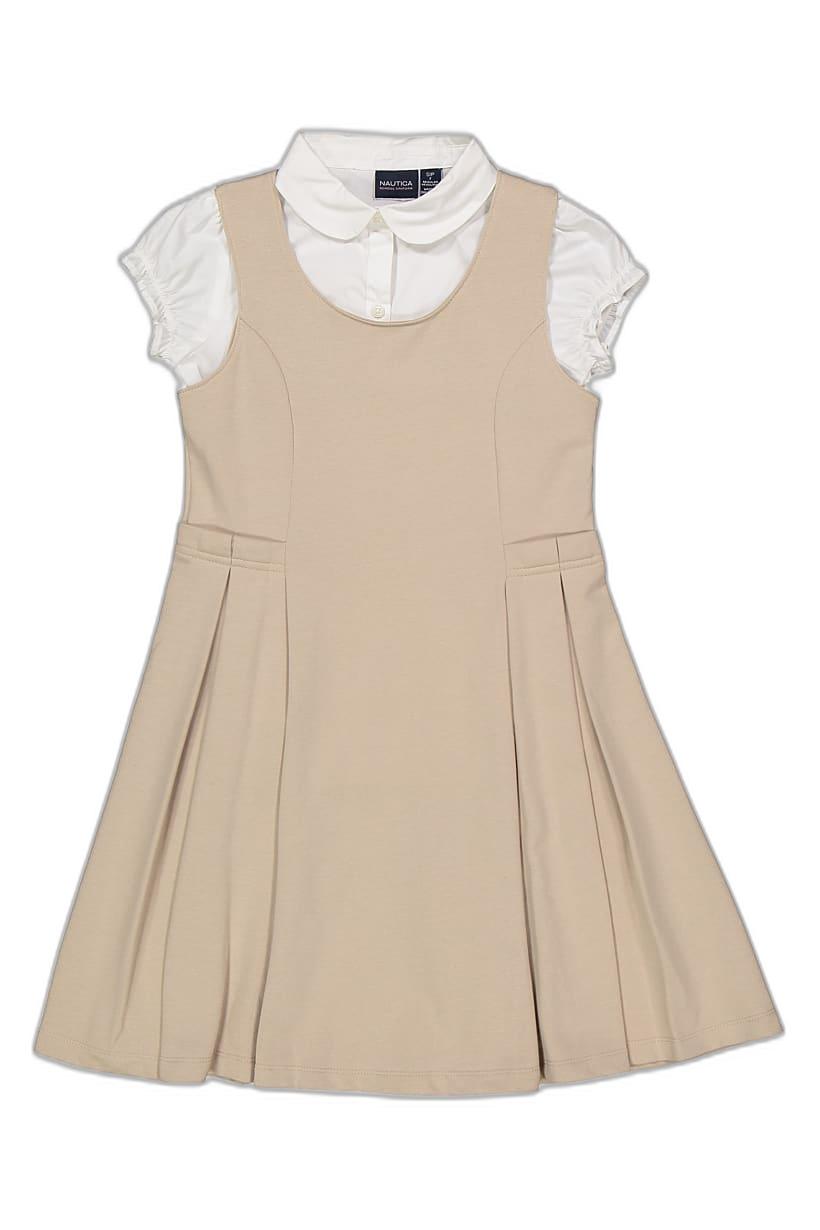 Kids Girl 2 Piece Top And Knit Dress Set, Khaki/White
