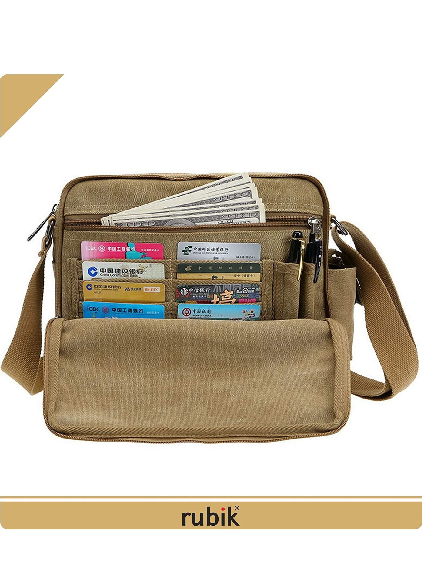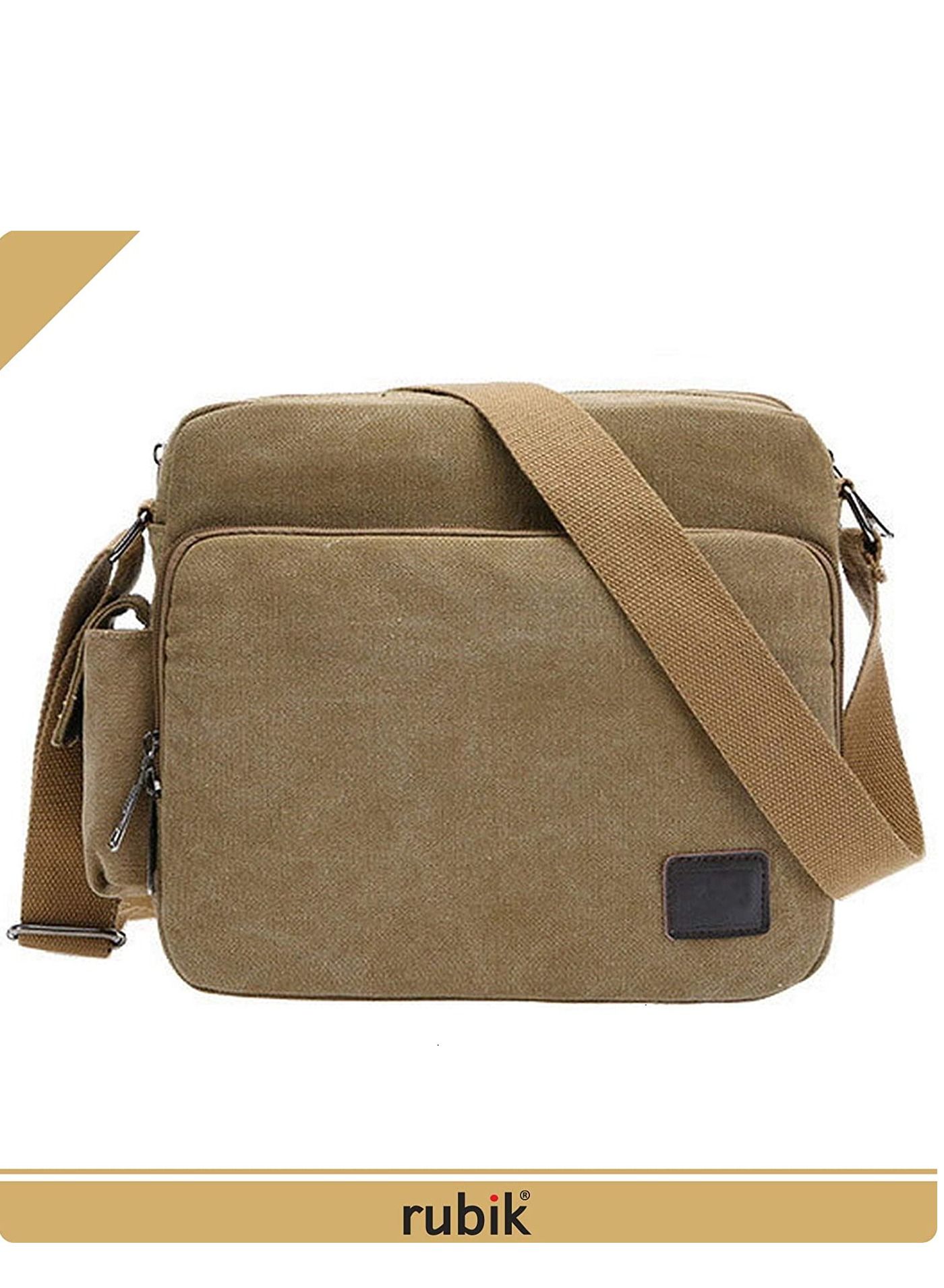 Shoulder Crossbody Side Bag Multifunctional Canvas Messenger Purse for Work Business Khaki