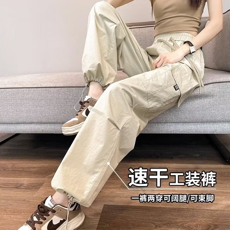 | nameOriginal | khaki Cargo Pants Women's Spring and Summer Loose Narrow Straight-Leg Wide-Leg Pants American Style Trendy Quick-Drying Sports Pants |