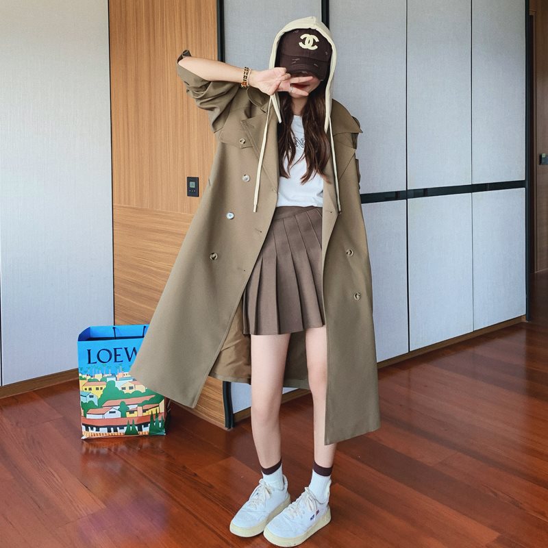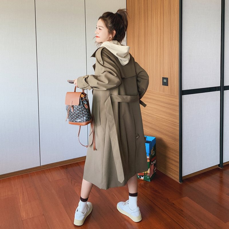 | nameOriginal | khaki Coat Coat Women's Spring and Autumn 2024 New British Style High-end Hooded Small Mid-length Coat |