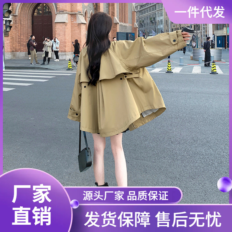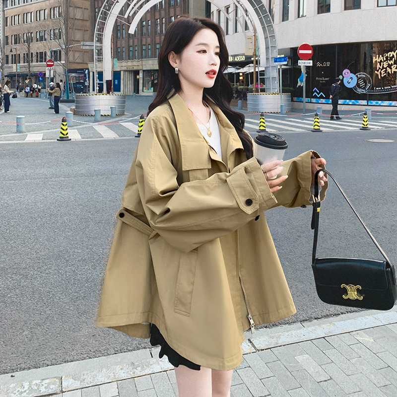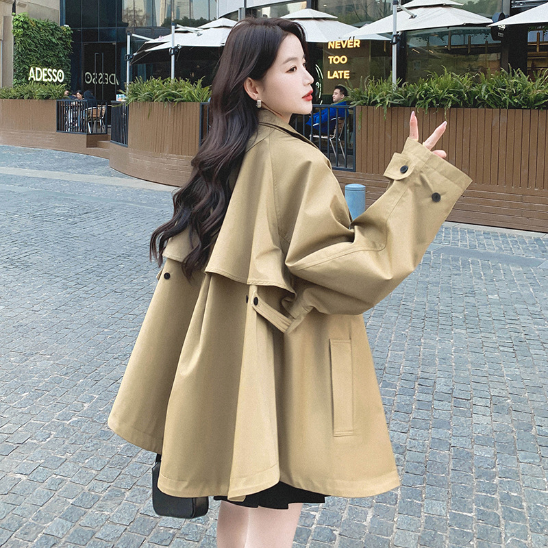 Khaki Coat Women’s Spring and Autumn Coat 2024 New High-end British-style Short Cape Coat Trendy