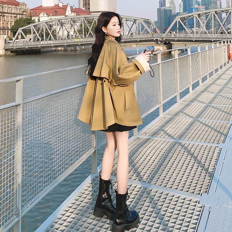 Khaki Coat Women's Spring and Autumn Coat 2024 New High-end British-style Short Cape Coat Trendy