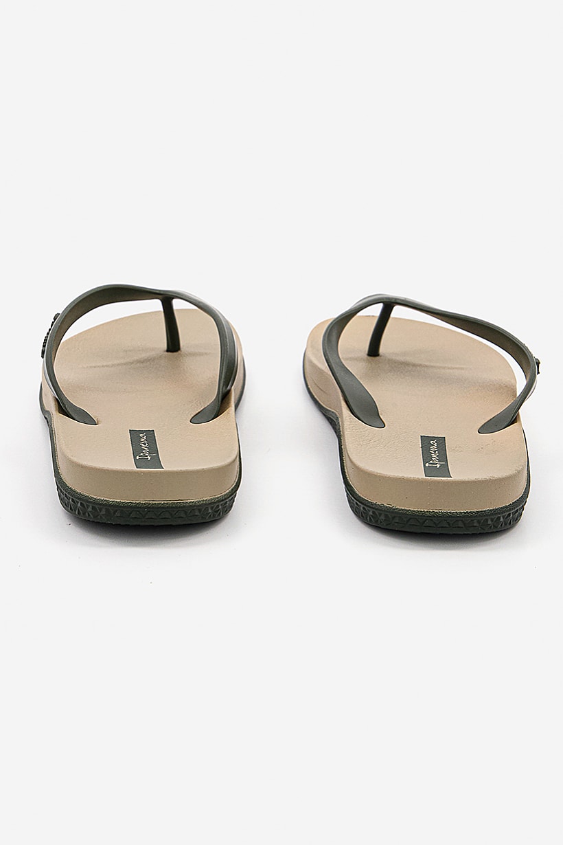 | sub_Categories | Shoes, Slides & Slippers, men brand logo slip on slippers khaki dark green |