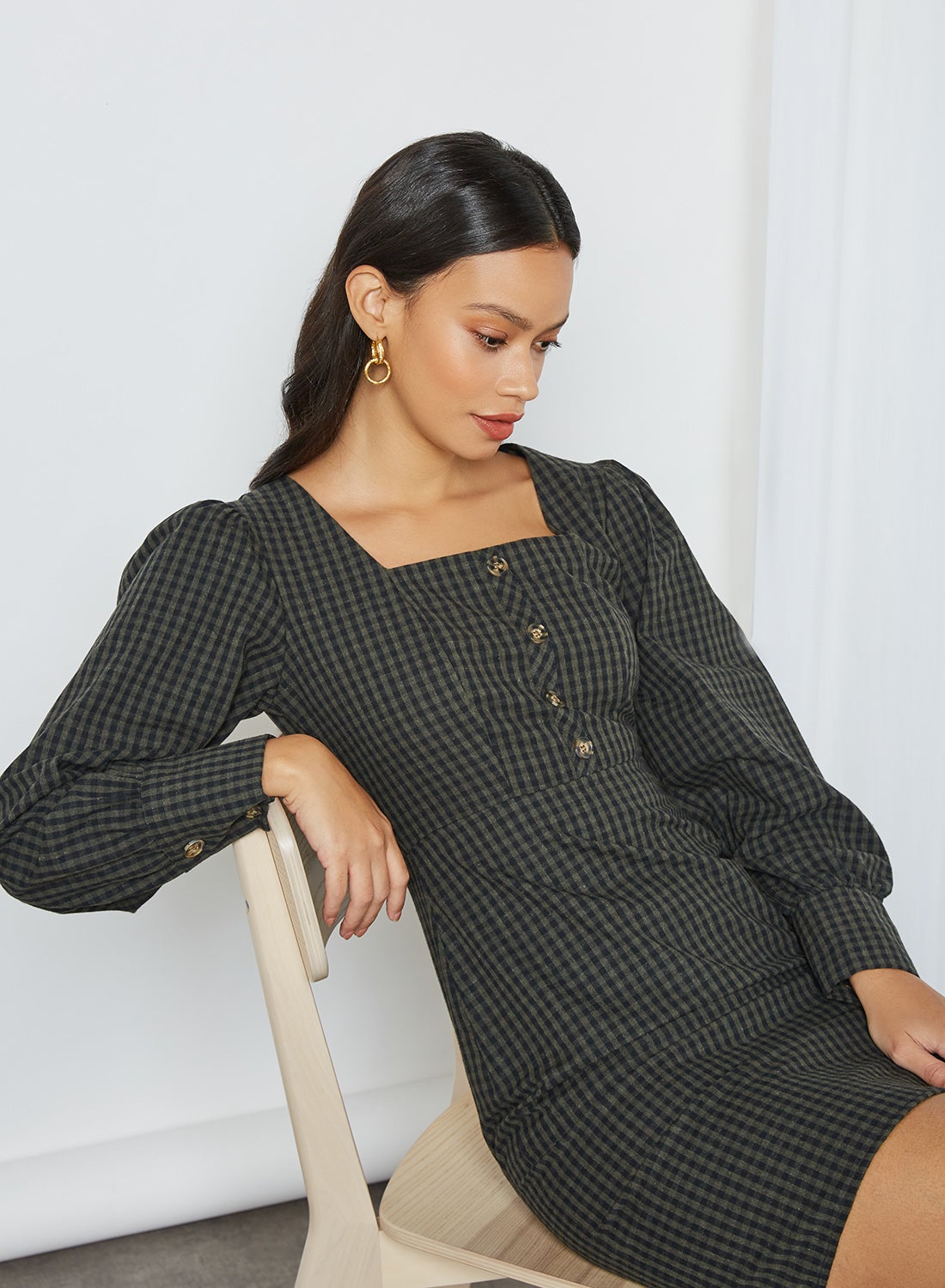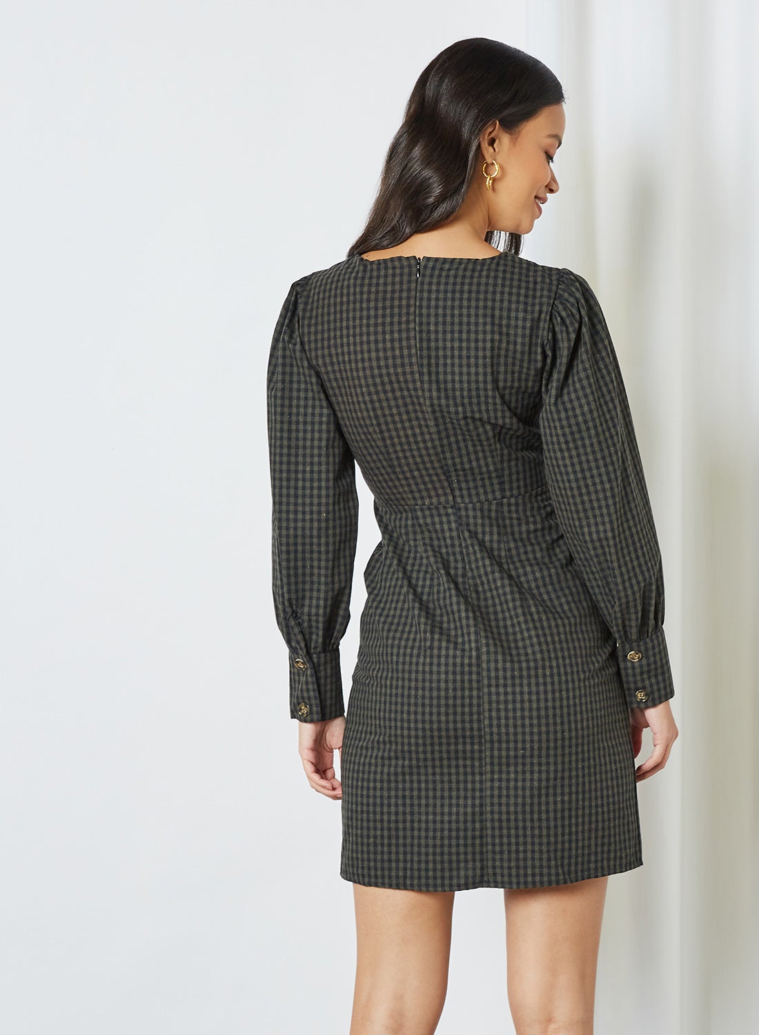 | nameOriginal | Checked Button Detail Dress Khaki |