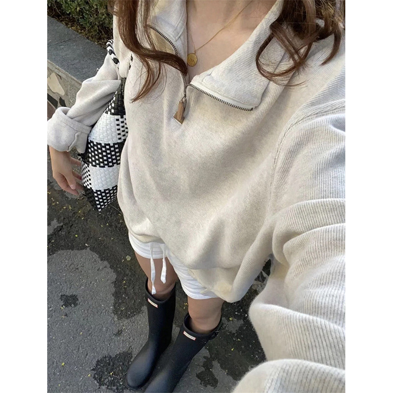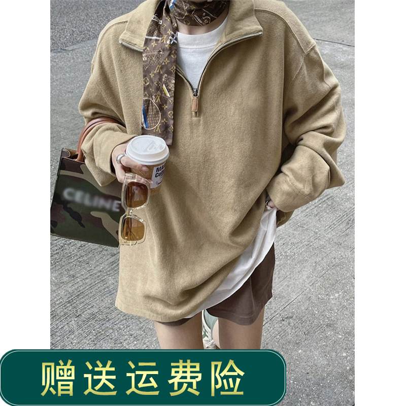 | nameOriginal | Khaki Half Zip Polo Collar Sweatshirt Women's Coat American Style Retro Loose oversize Shoulder Top Autumn |