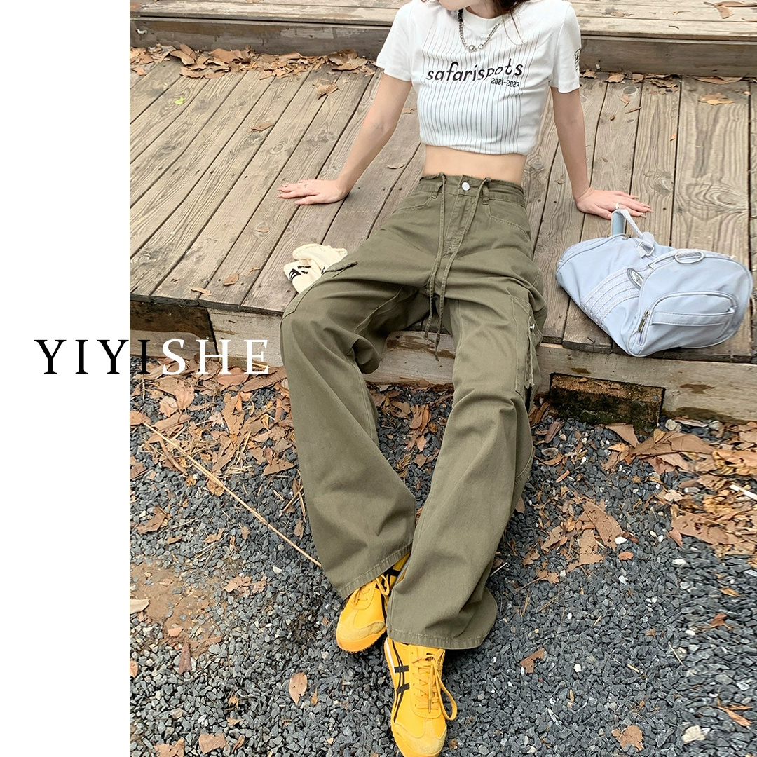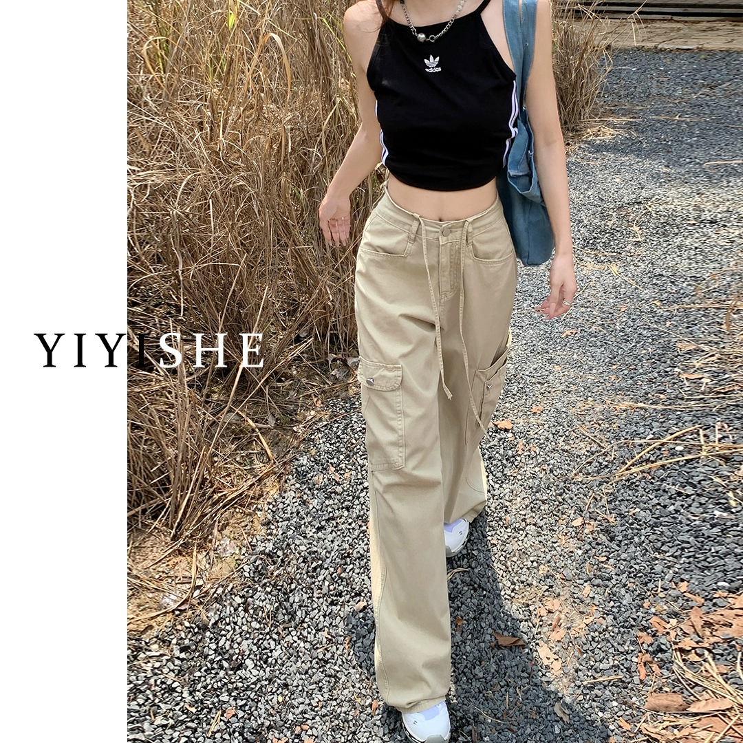 | nameOriginal | Khaki High Waisted Dopamine Loose Drape Cargo Pants |