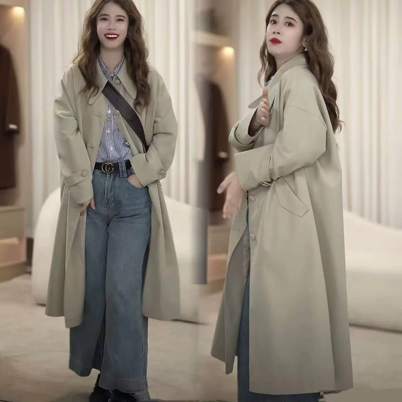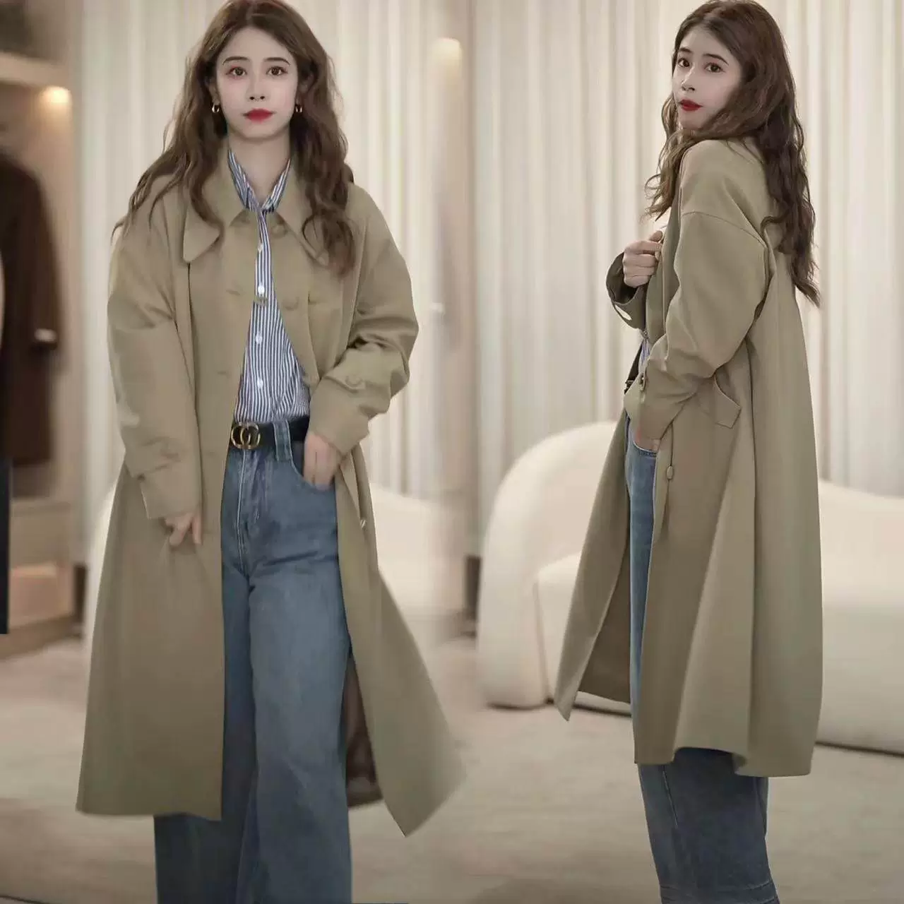 | nameOriginal | Khaki mid-length spring and autumn Korean style European style windbreaker |
