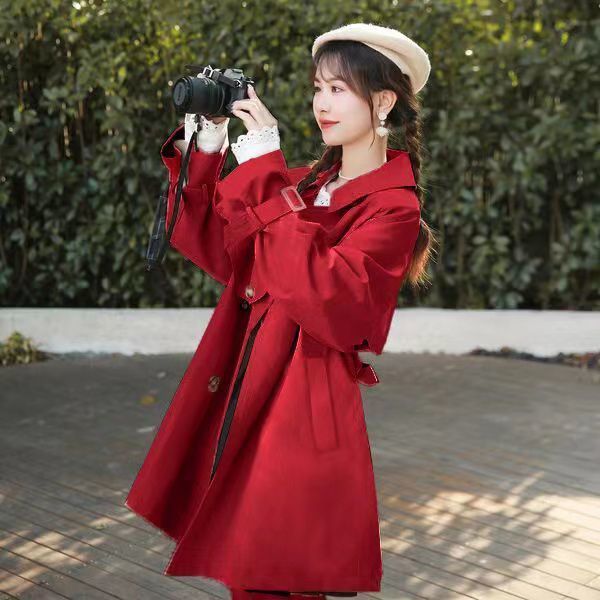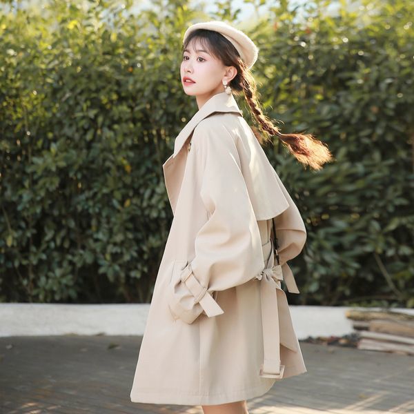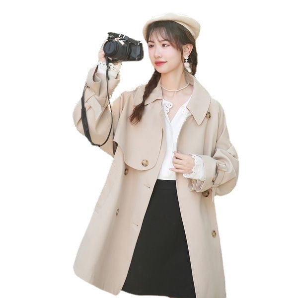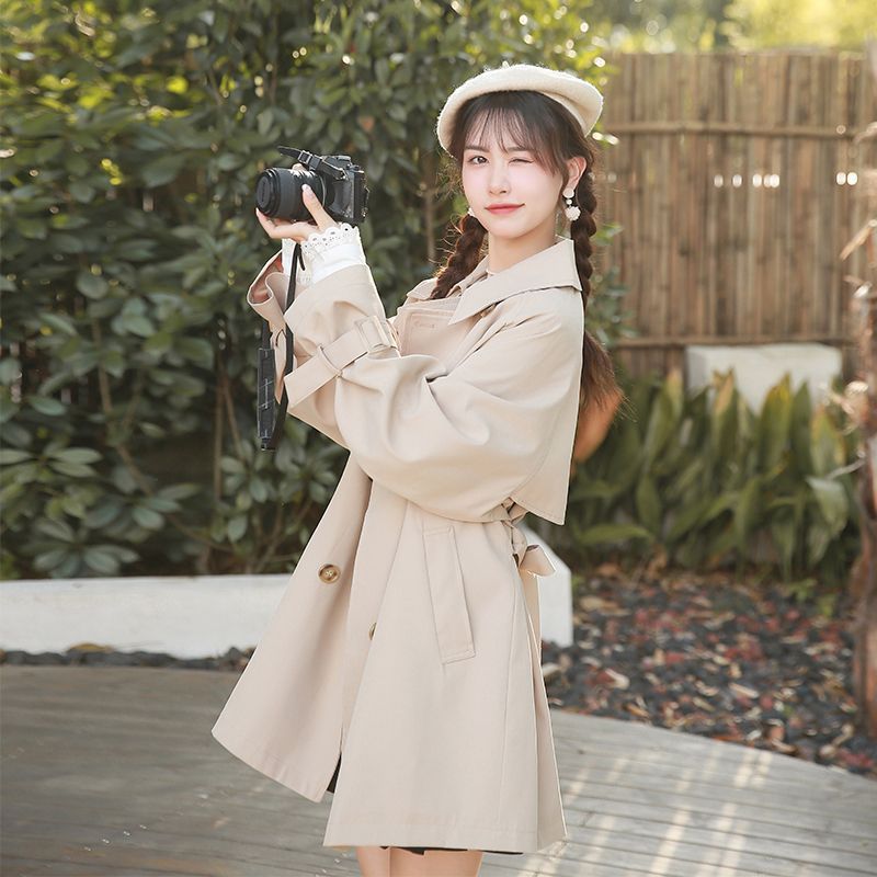 Khaki mid-length trench coat for women 2023 Spring and Autumn new small Japanese thin casual elegant overcoat