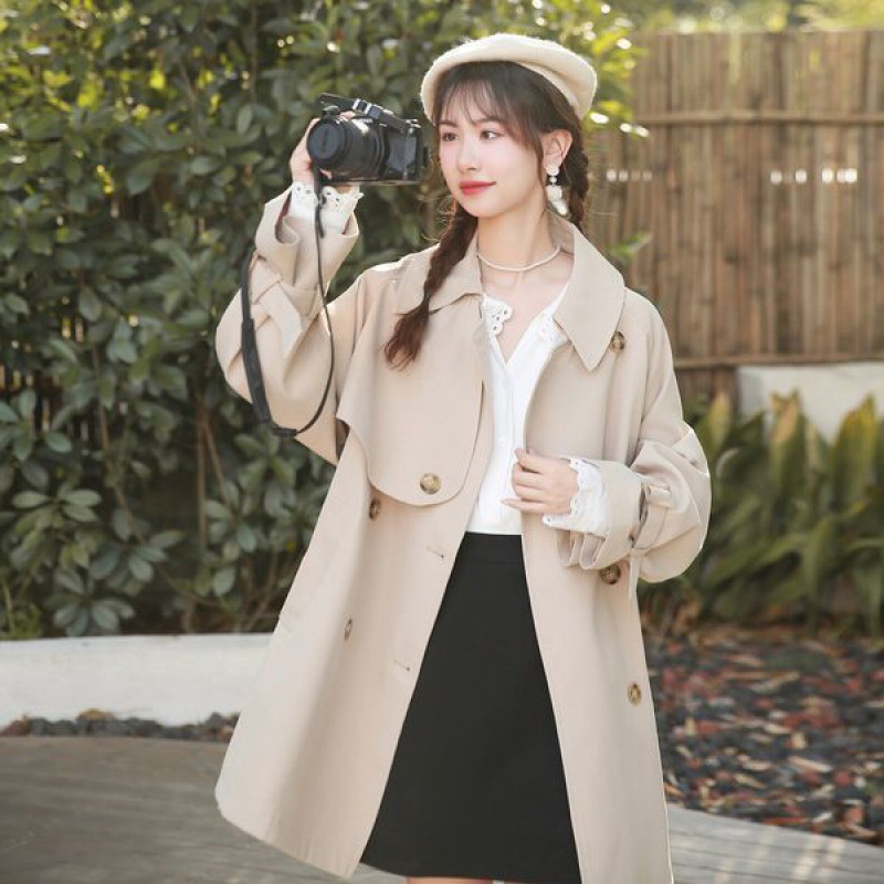Khaki mid-length trench coat for women 2023 Spring and Autumn new small Japanese thin casual elegant overcoat