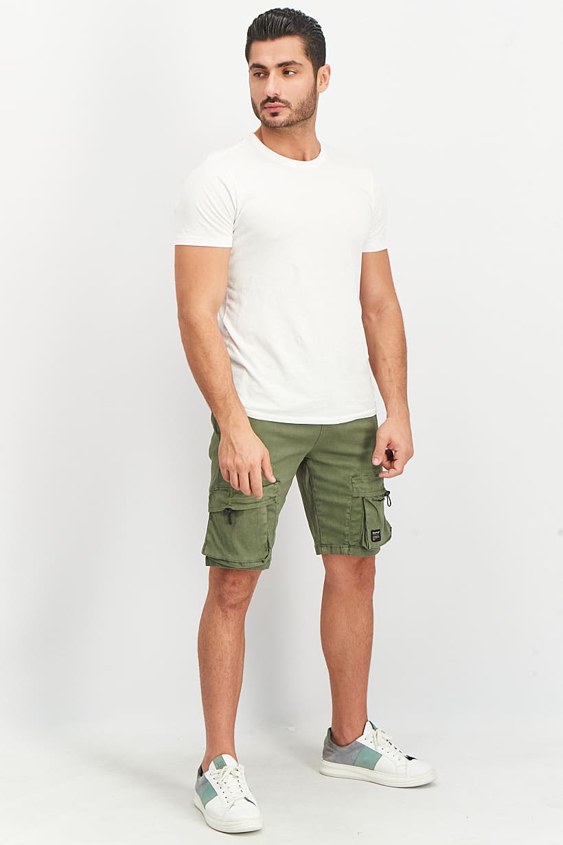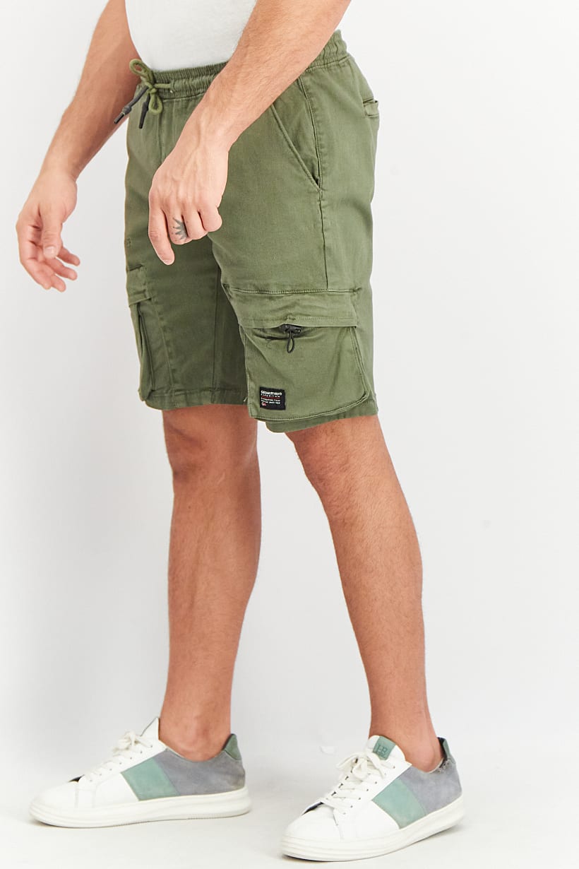 | sub_Categories | Men Clothing, Shorts, men regular fit drawstring embroidered cargo short khaki olive |