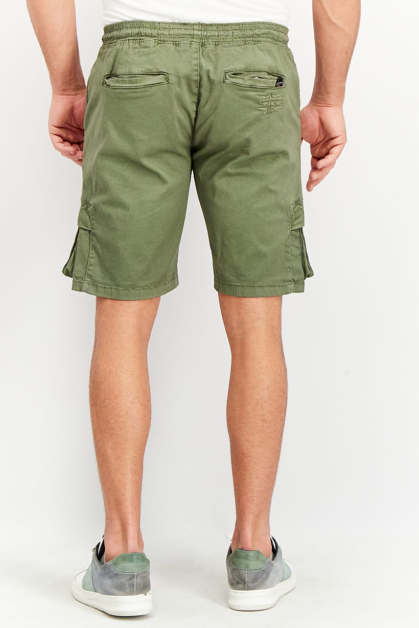 | nameOriginal | Men Regular Fit Drawstring Embroidered Cargo Short, Khaki Olive |