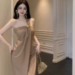 | nameOriginal | Khaki one-shoulder dress summer slim fit tube top |
