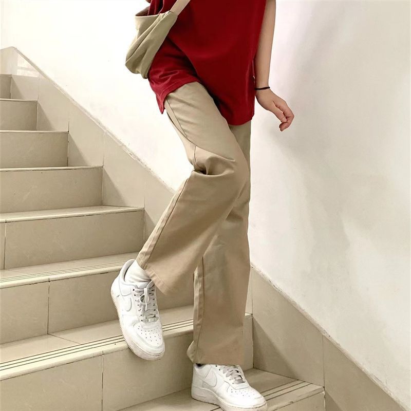 | nameOriginal | khaki Pants Women's 2024 New Summer Japanese Vintage Overalls All-match Loose Straight Casual Wide-leg Pants |
