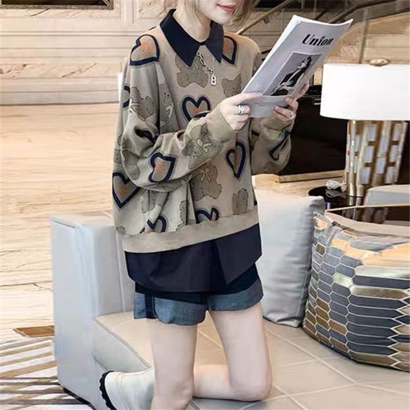 | nameOriginal | khaki printed Polo collar sweater women's 2022 new design sense niche fashion foreign style fake two-piece top tide |