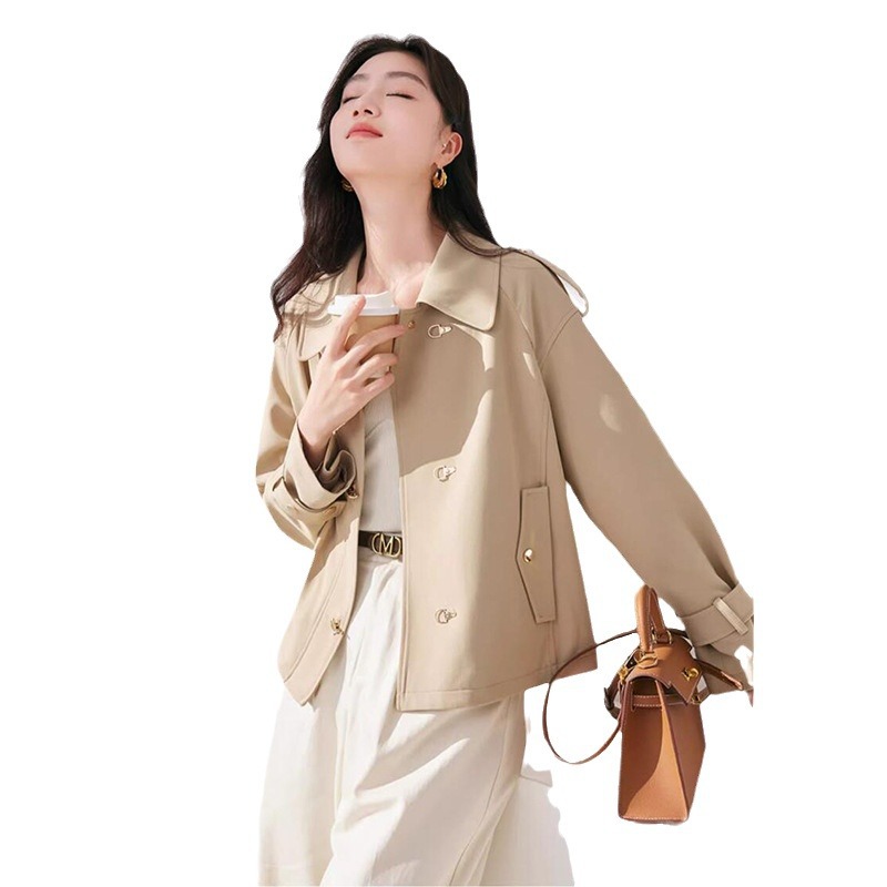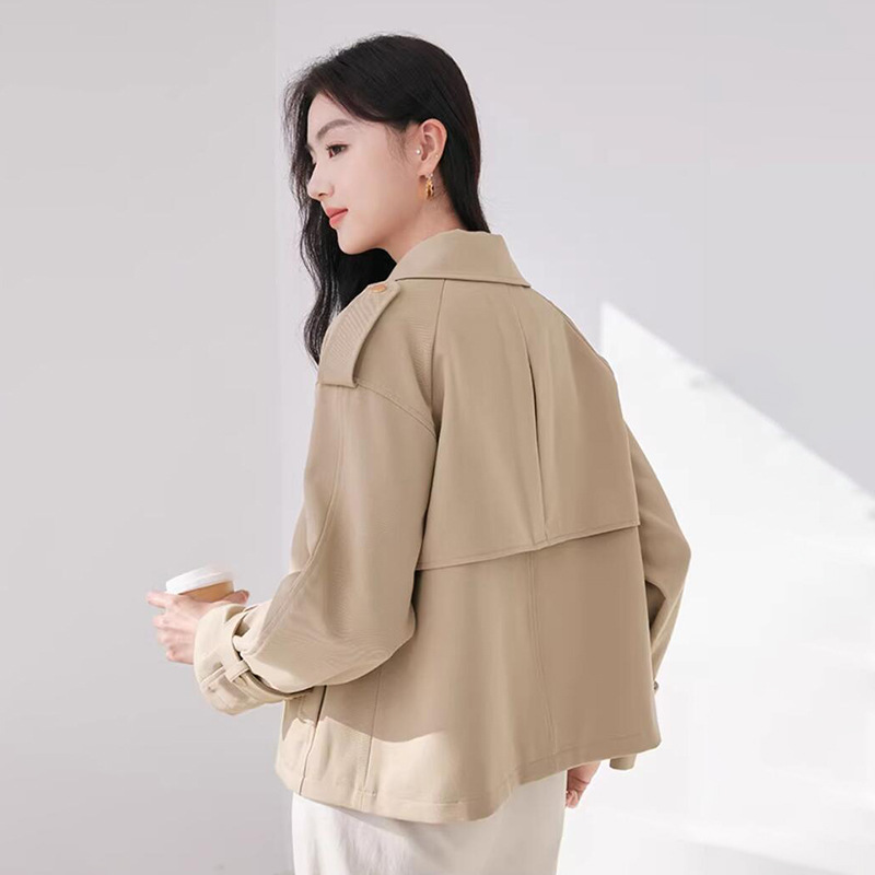 khaki short trench coat women's short 2024 spring new British style lapel casual coat J841140801