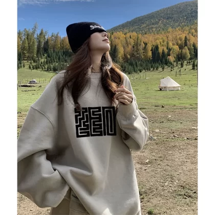 | nameOriginal | Khaki spring, autumn and winter velvet butt-covering sweatshirt |