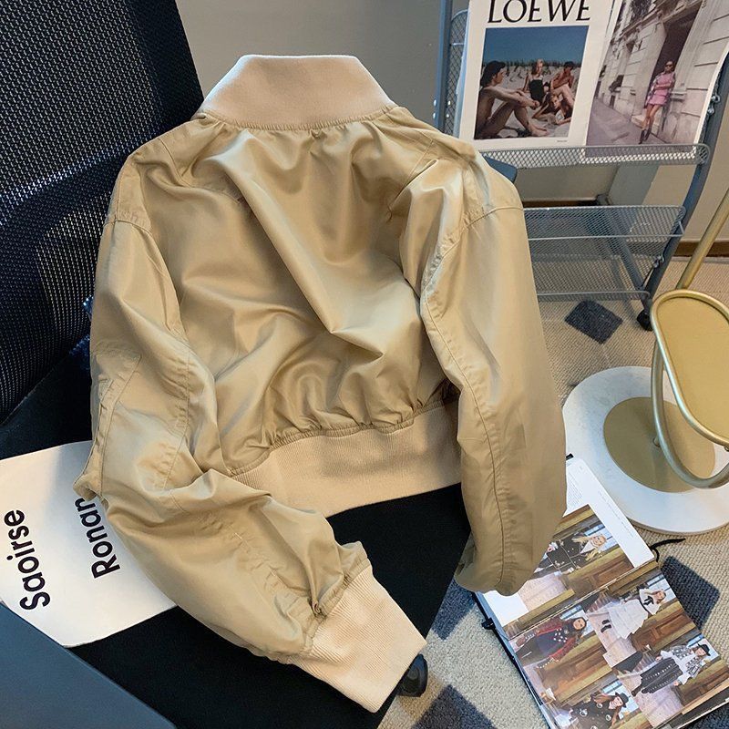 | nameOriginal | Khaki stitching pilot jacket coat for women 2023 Autumn New style workwear style loose casual short coat |