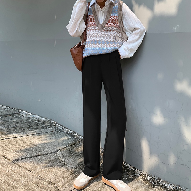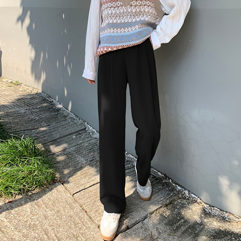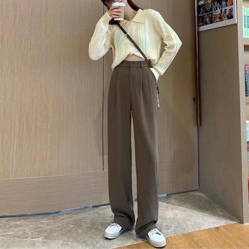 | nameOriginal | Khaki suit pants women's spring summer autumn high waist drape relaxed-fit straight casual pants slimming small wide leg pants |