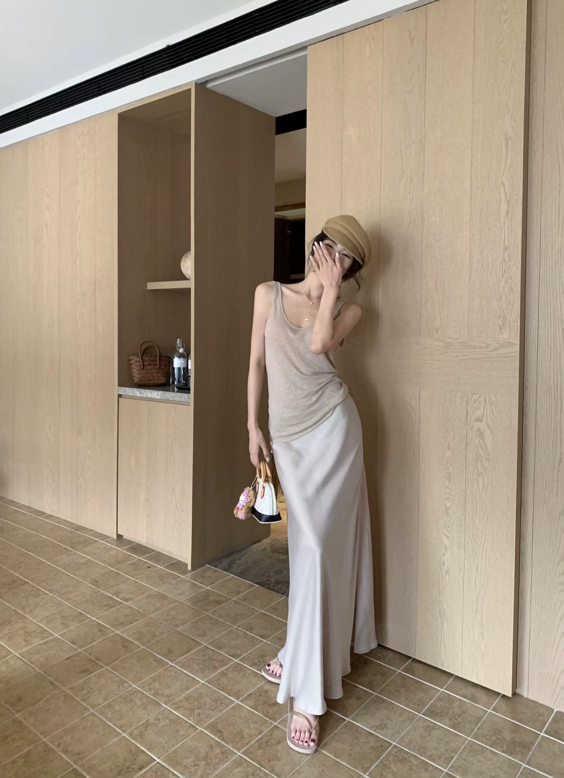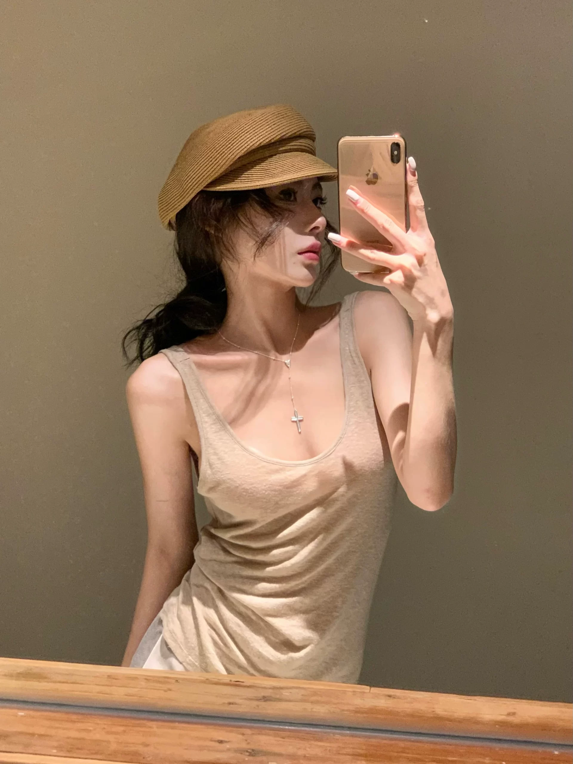 Khaki Thin Hot Girl Slim Fit Sleeveless Camisole