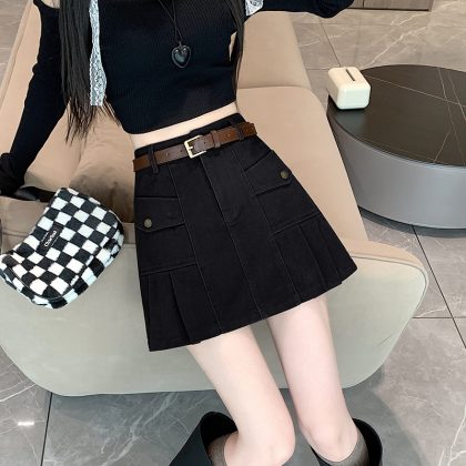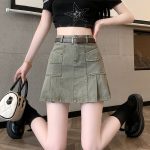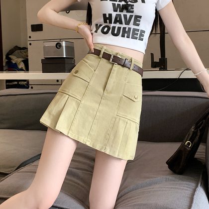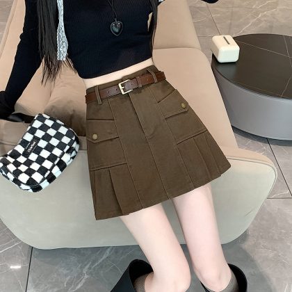 khaki Tooling Pleated Skirt Women’s Summer 2024 New High Waist Slimming Sweet Spice Girl Small Puff Skirt