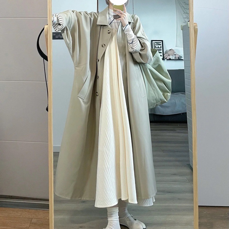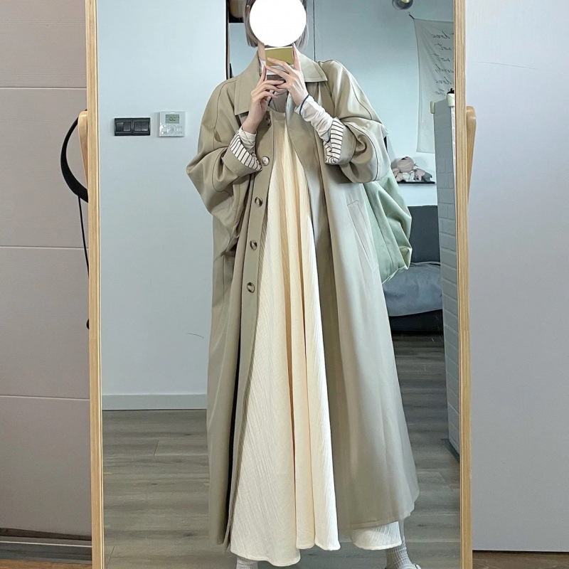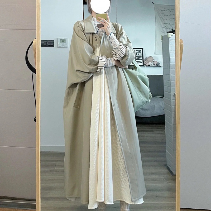 | nameOriginal | Khaki trench coat women's elegant commuter style loose over-the-knee Autumn New stitching mid-length casual overcoat |