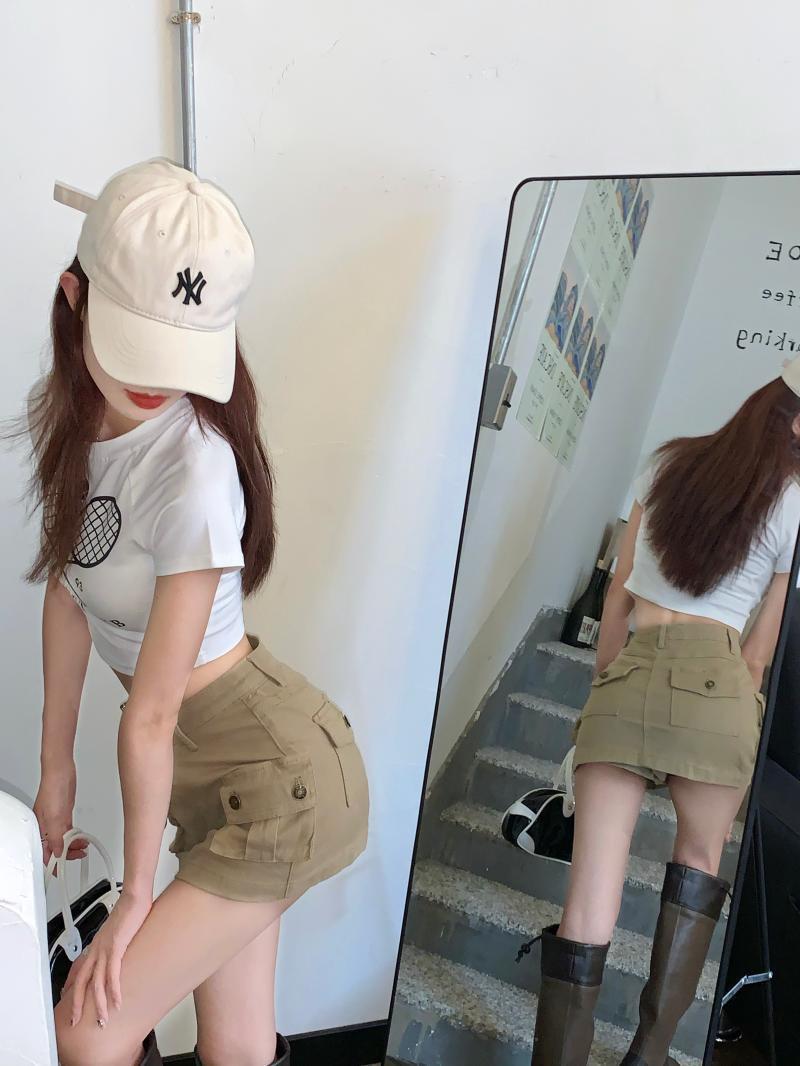 | nameOriginal | Khaki Workwear Dress Women's Summer Spice Girl Anti-glare Denim Slimming Retro Skirt High Waist A- line Short Skirt |