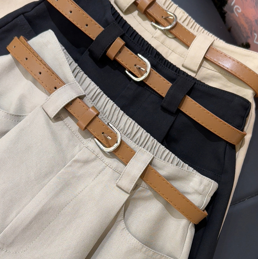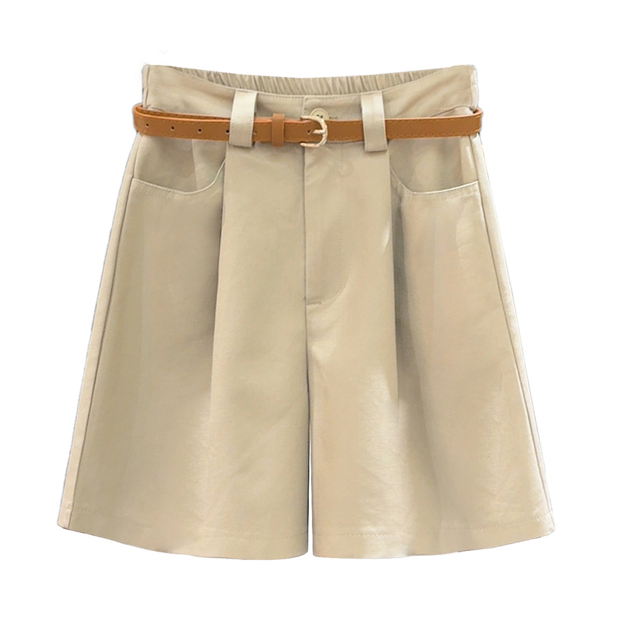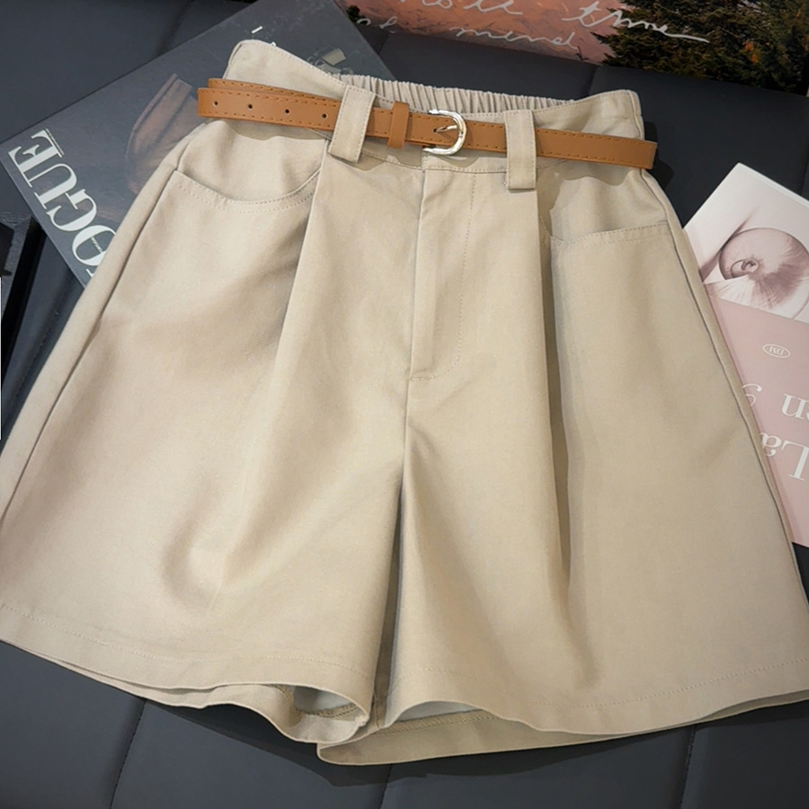 Khaki Workwear Shorts Women’s Summer Thin Loose Slim A- line Wide-leg Mid-length Pants High Waist Five-point Cotton and Linen Pants