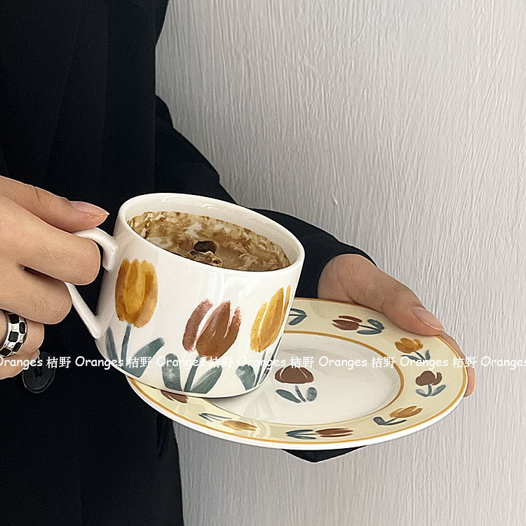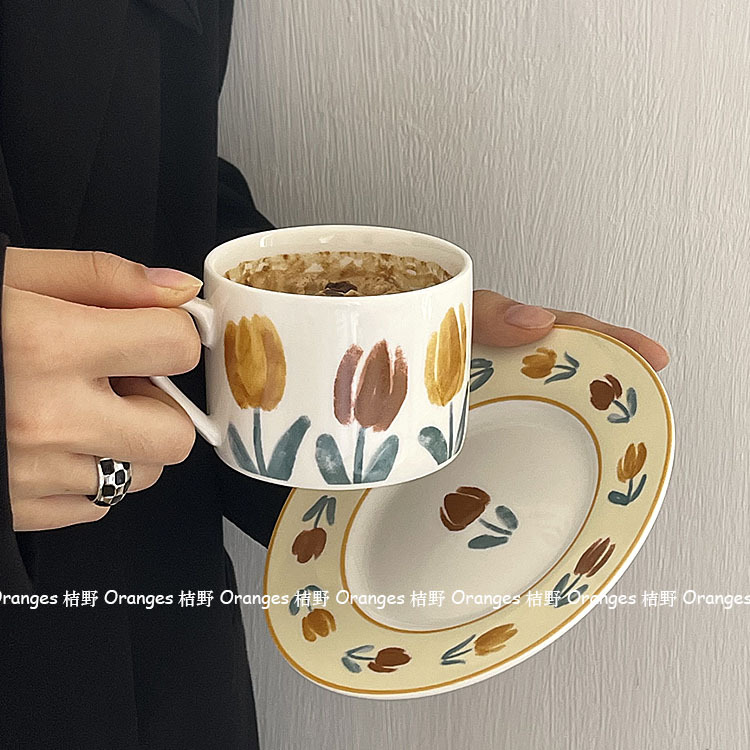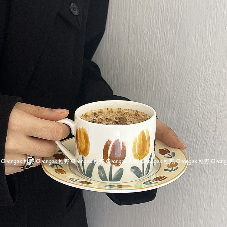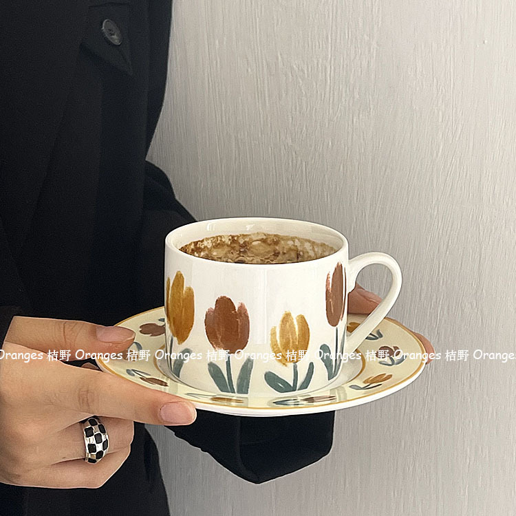 KI9S Finland medieval Tulip ceramic coffee cup and saucer suit breakfast latte cup vintage mug afternoon tea