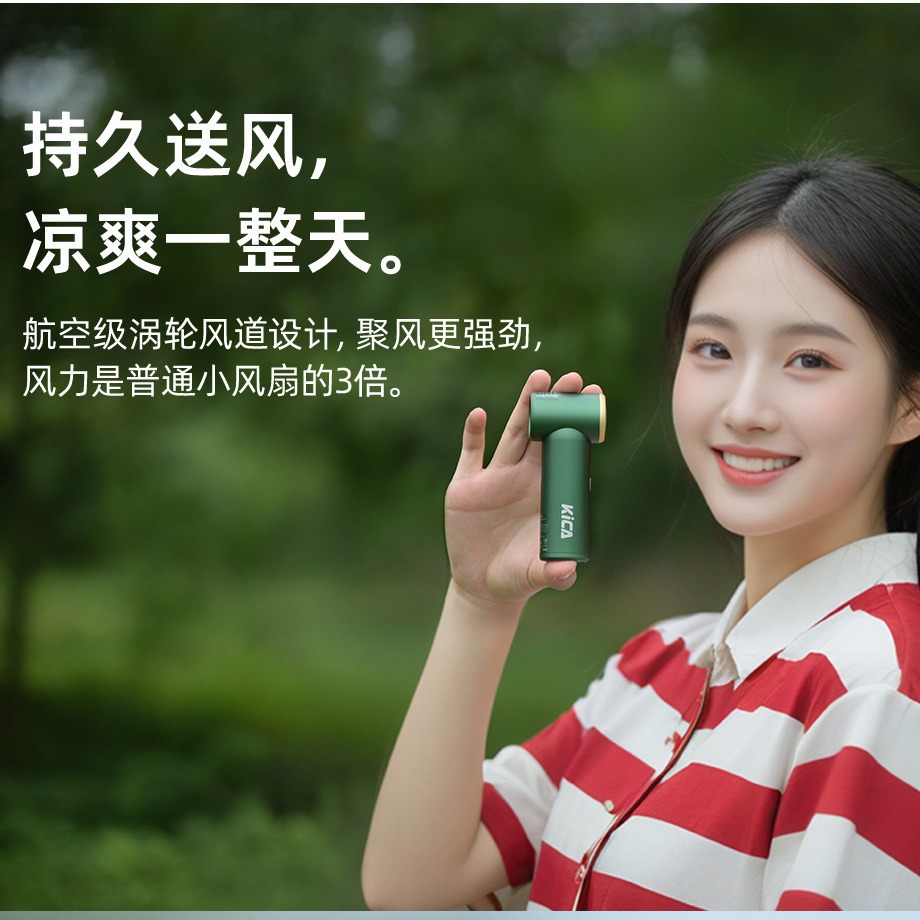 | nameOriginal | Kica Hand-held Mini Fan Energy-saving Small Air Cannon Powerful Wind Blaneless Turbine Lightweight and Portable |