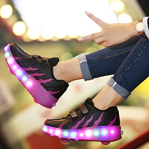 | nameOriginal | HUSKSWARE Roller Skates Shoes Girls Boys Double Roller Shoes Kids Outdoor Luminous Shoes for Kids (31,Black Pink) |