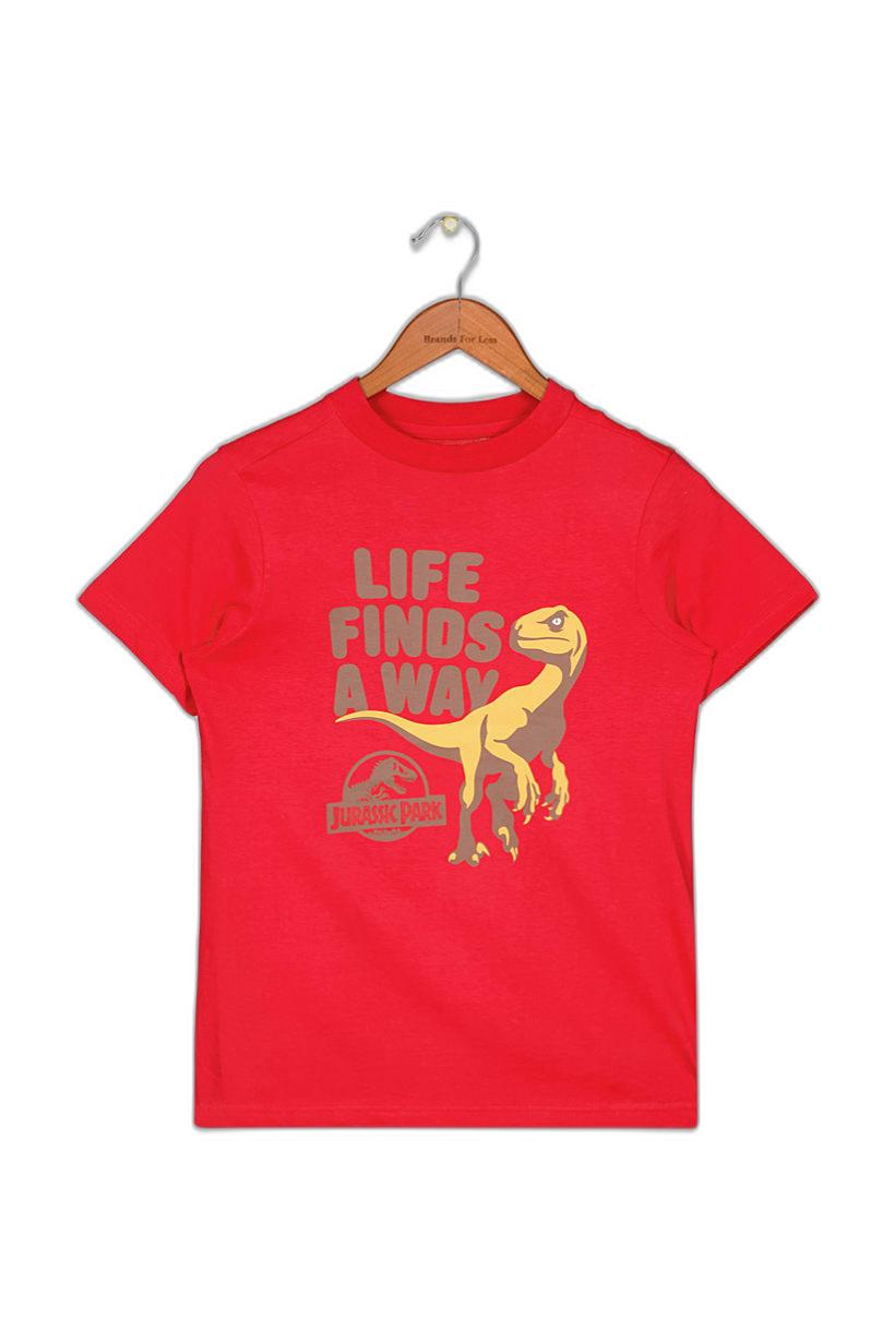 Care : Machine washable, Ideal For : Boys, Sleeve Length : Short Sleeve, Type of Hem : Straight hem , Type of Neckline & Collar : Crew neckline , Disclaimer : Product color may slightly vary due to photographic lighting sources or your monitor settings., Fabrics : 100% Cotton, Occasion : Casual, Pattern & Print : Graphic print, Type of Sleeve : Short sleeve , Types of Closures : Pullover, Color Family : Red,