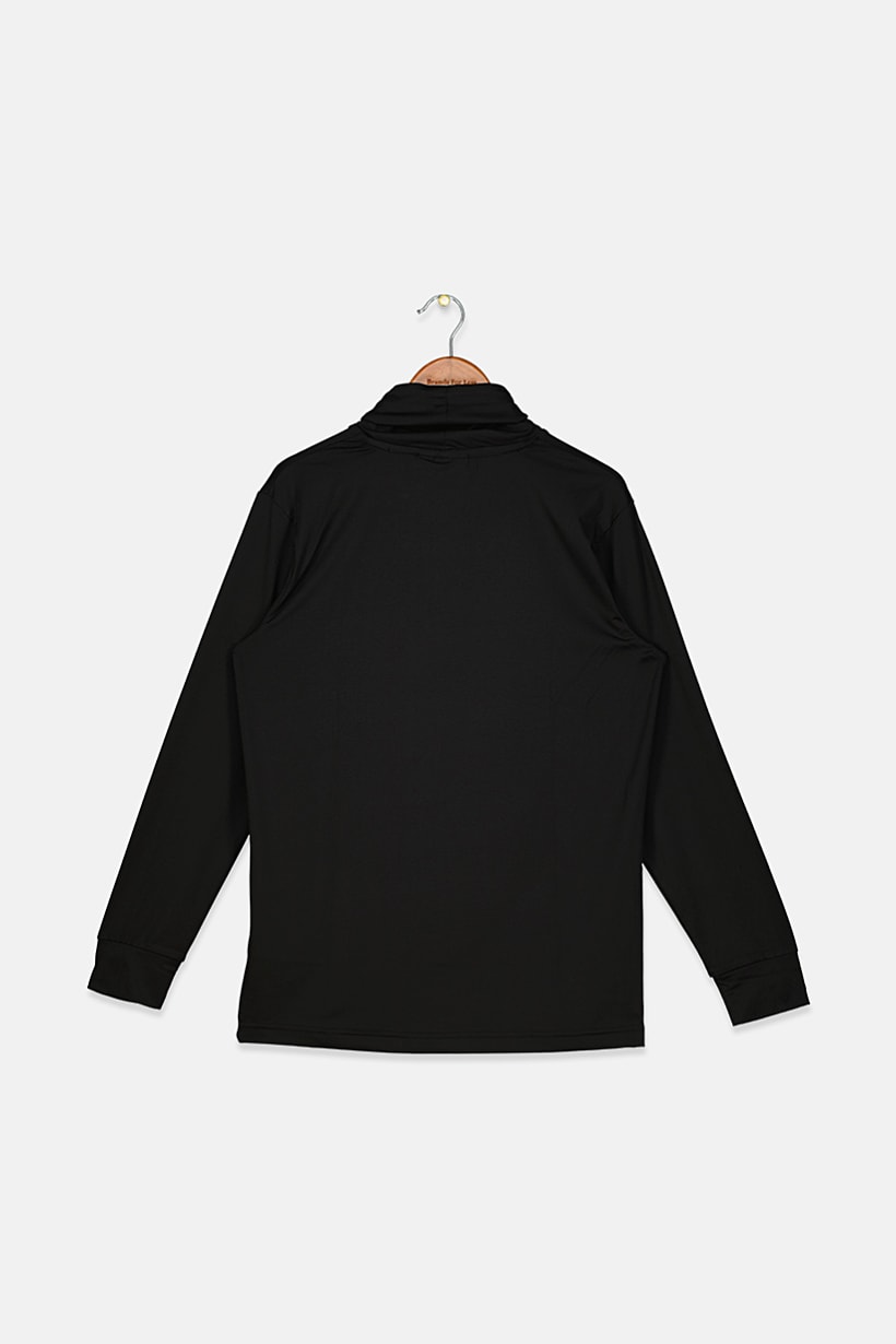 Kids Boy Turtle Neck Long Sleeve Plain T-shirt, Black