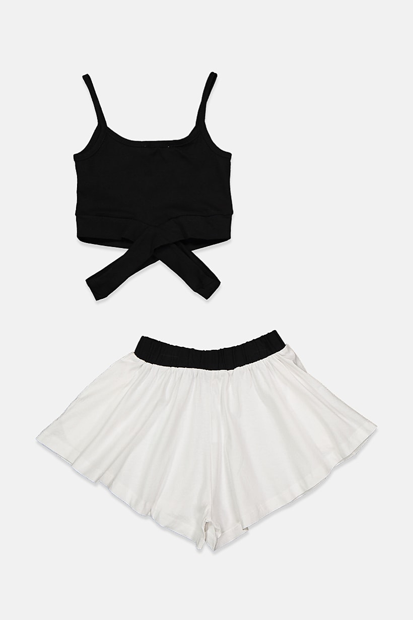 Kids Girl 2 Pc Graphic Top And Shorts Set, Black and White
