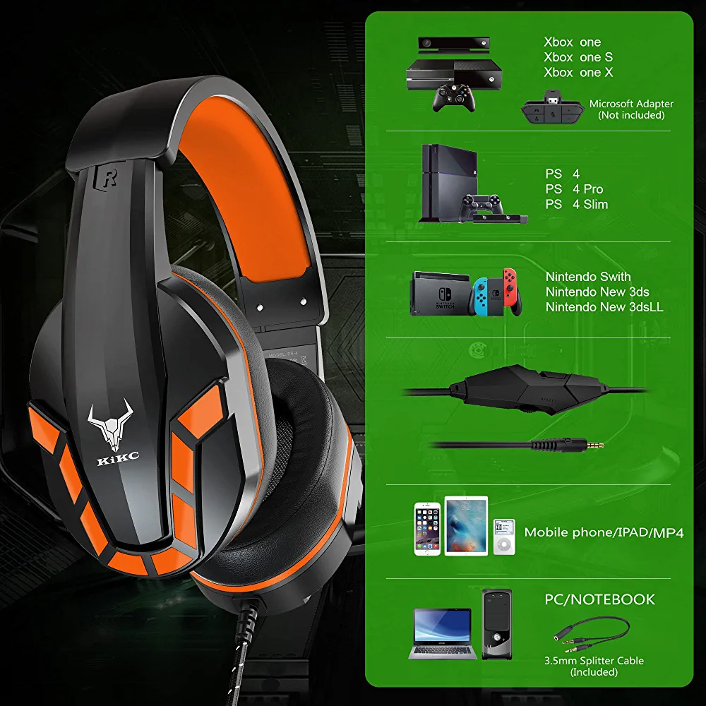 【HIGH-QUALITY SOUND】: Headset With a 40mm driver, Kikc PS4 gaming headphones offers a good sound for both games and music. The Nintendo switch headset with a mic lets you gain a competitive edge and take your game to the next level. Perfect for various games like Halo 5 Guardians, Metal Gear Solid, Call of Duty, Star Wars Battlefront, Overwatch, World of Warcraft Legion, etc