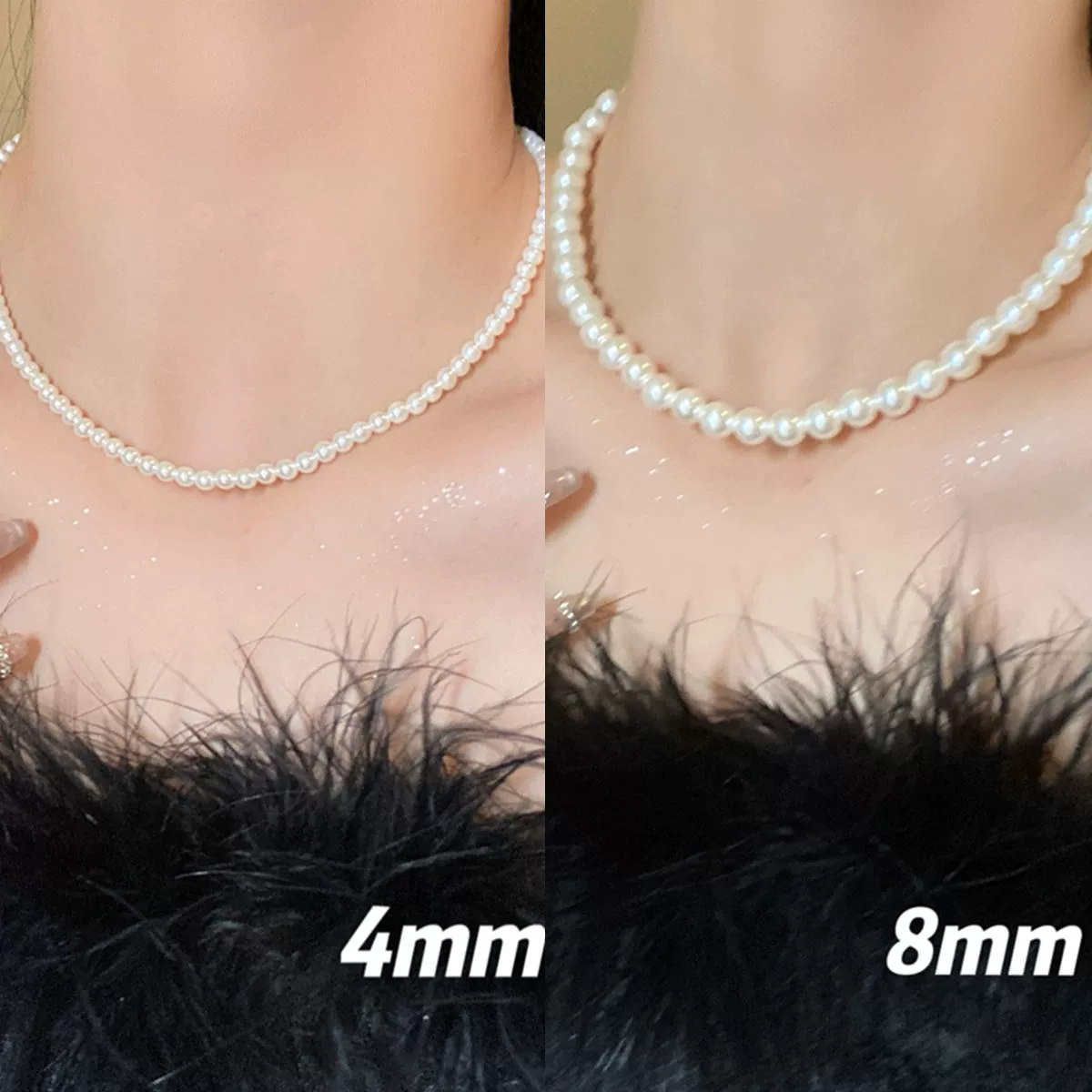 Kim Ji-soo's retro high-end versatile collarbone chain pearls