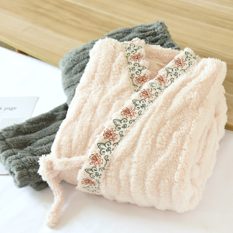 Kimono pajamas coral fleece pajamas for women Spring Autumn and Winter thickened fleece-lined long sleeve flannel home wear suit Princess style