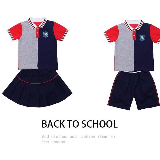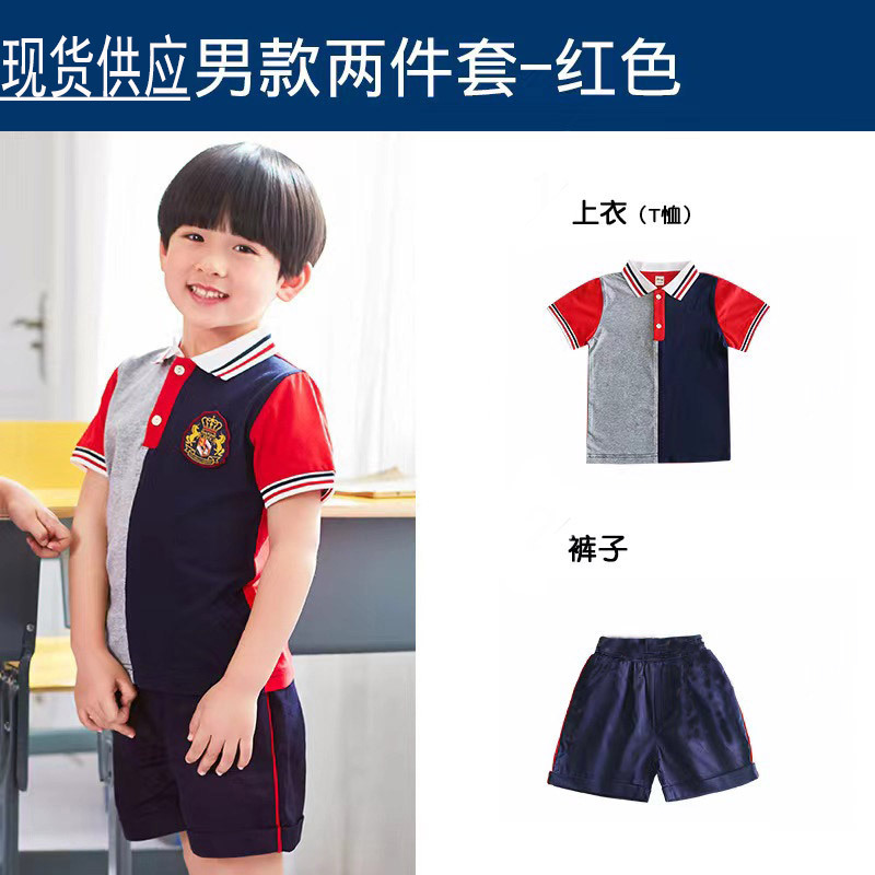 Kindergarten clothing red blue gray patchwork college style sports suit children’s clothing in stock wholesale primary and secondary school class clothing