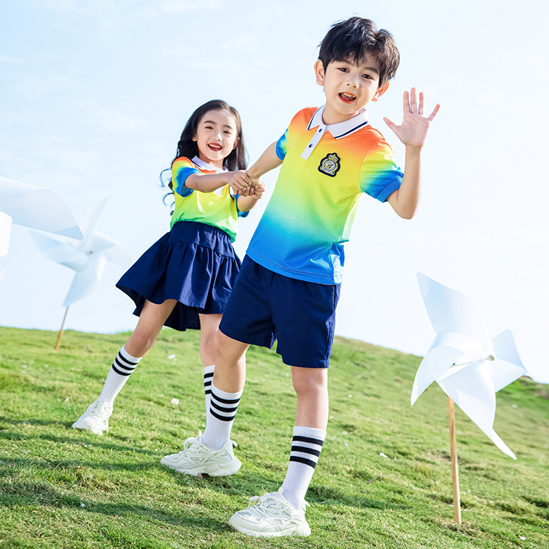 Kindergarten Garden Clothes Rainbow Three-piece Set Primary School Summer Chorus Class Clothes Sports Graduation Children’s School Uniforms College Style