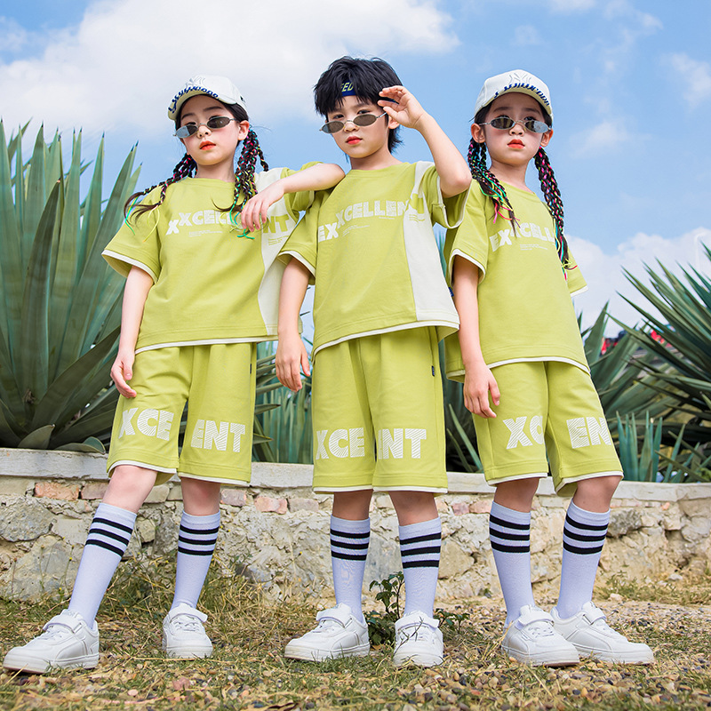 | nameOriginal | Kindergarten garden clothes summer sports meeting suit Children's Day performance clothes first grade primary school students short casual two-piece suit |