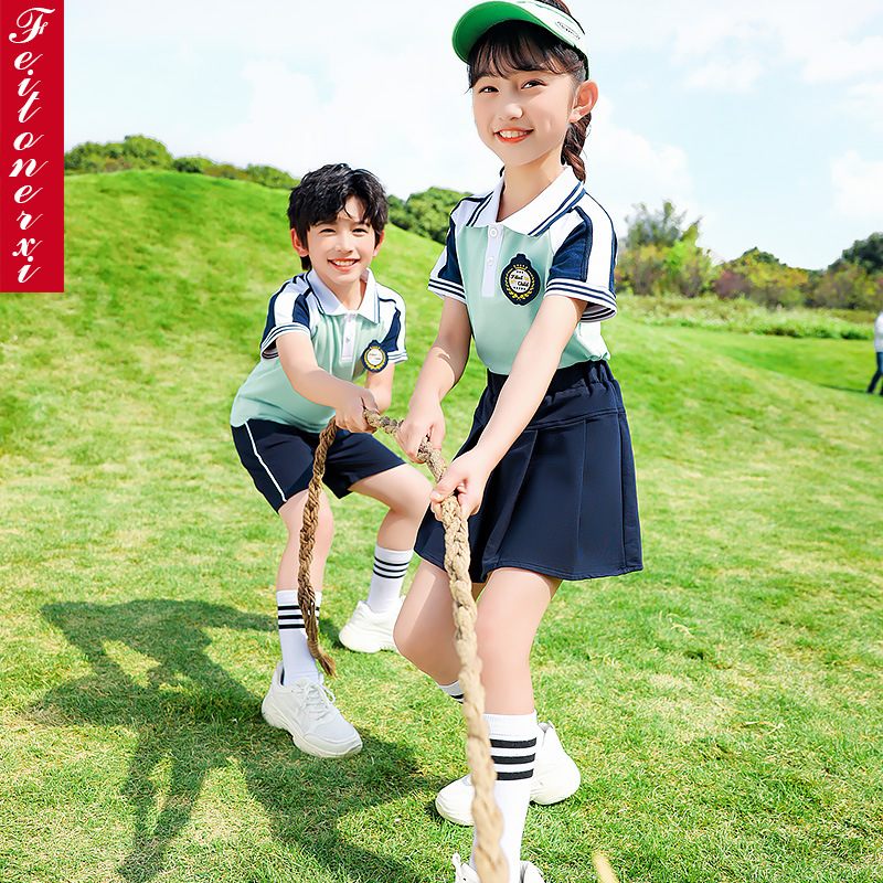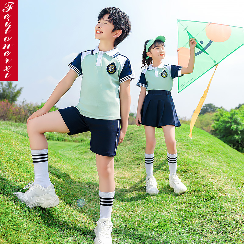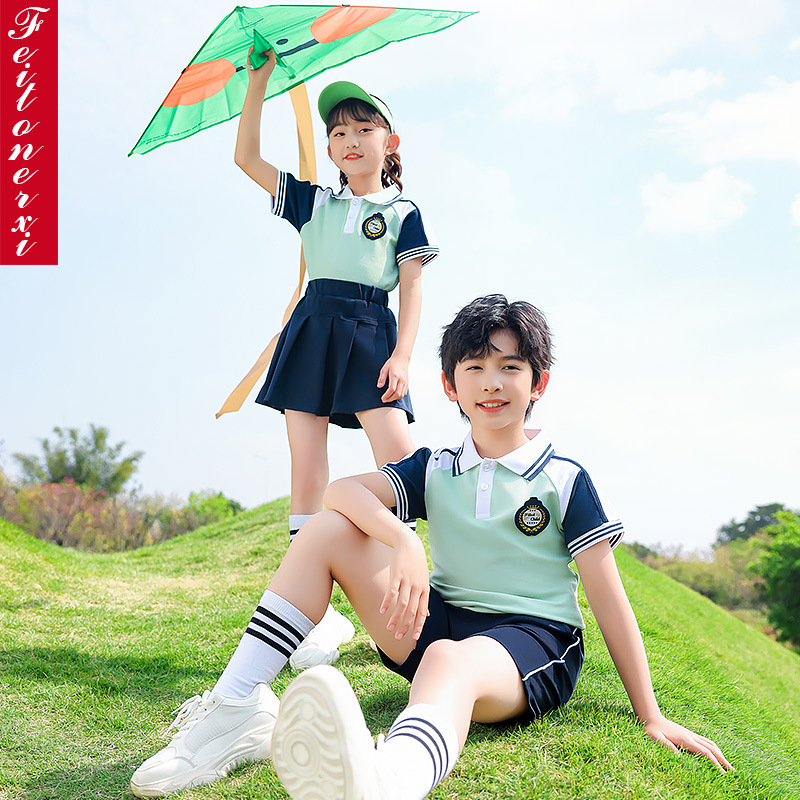 <Philippines children Xi> kindergarten Garden clothing Bean Green first grade summer primary school uniform children's class uniform short sleeve suit
